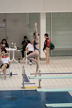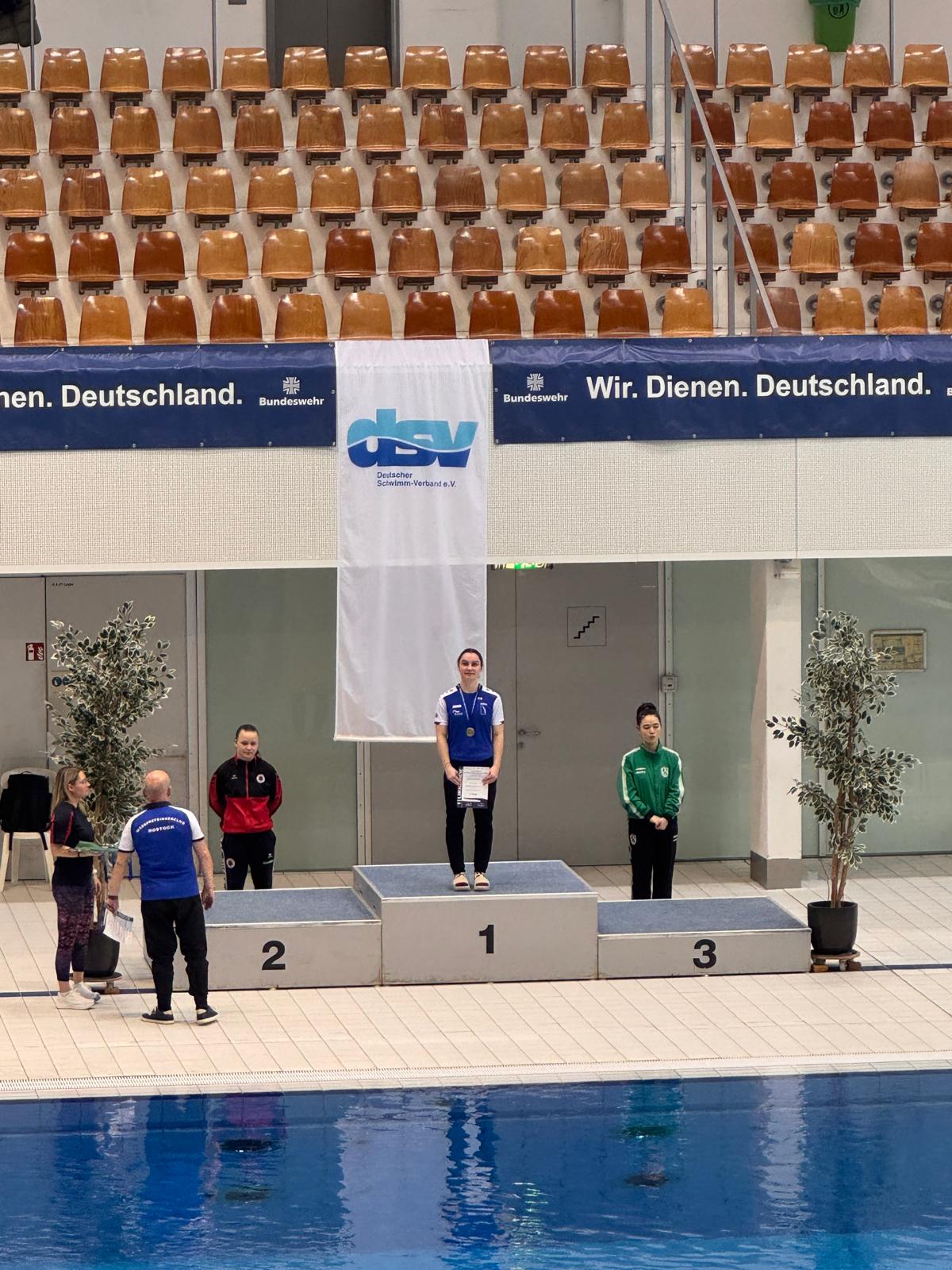 Vom 3-Meter-Brett zeigte sich das Rostocker Team besonders stark. Emily steigerte sich von Runde zu Runde und belegte im Finale hinter den Olympionikinnen Jette Müller (Dresden) und Lena Hentschel (Berlin) mit 274,65 Punkten den 3. Platz. Bereits im Vorkampf sicherte sie sich zudem die Goldmedaille in der Juniorenwertung.