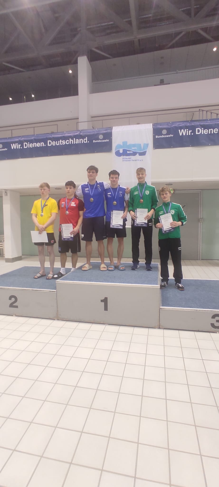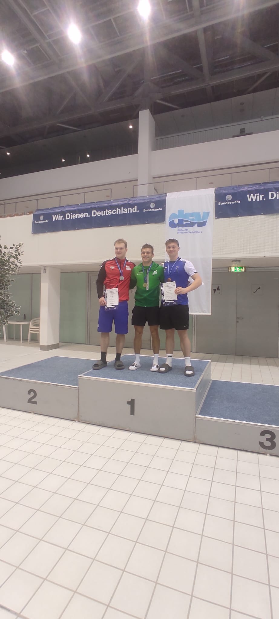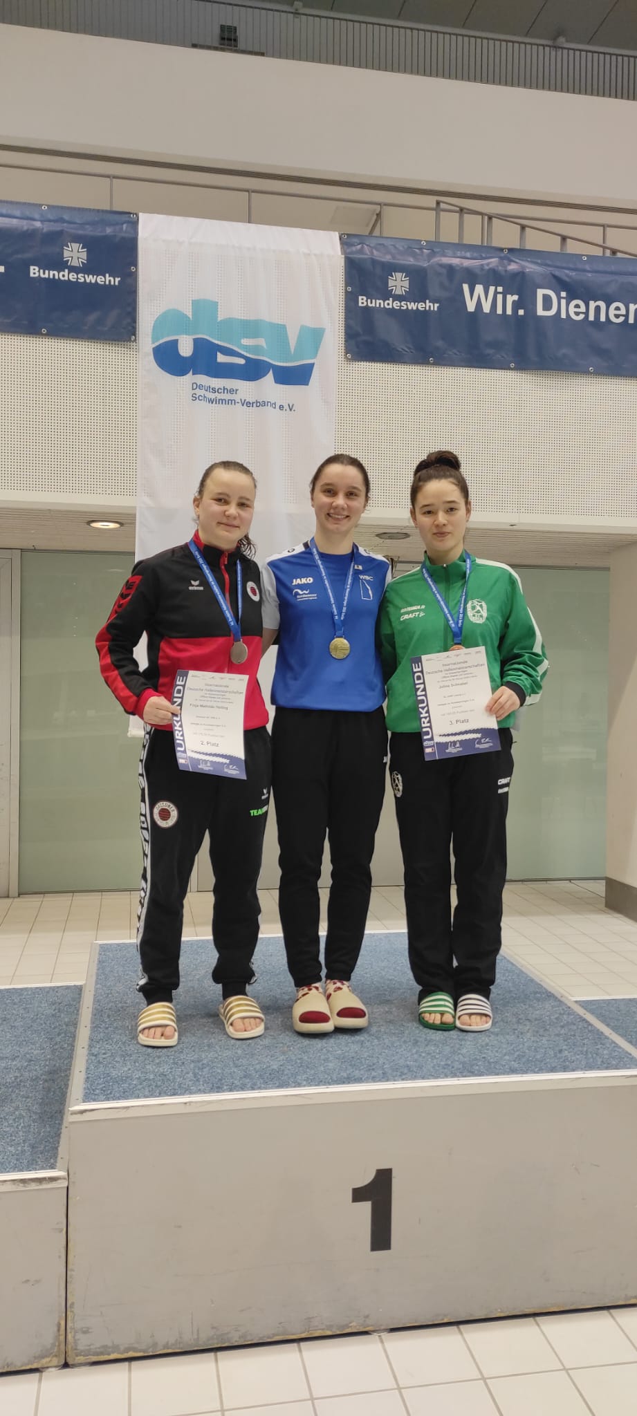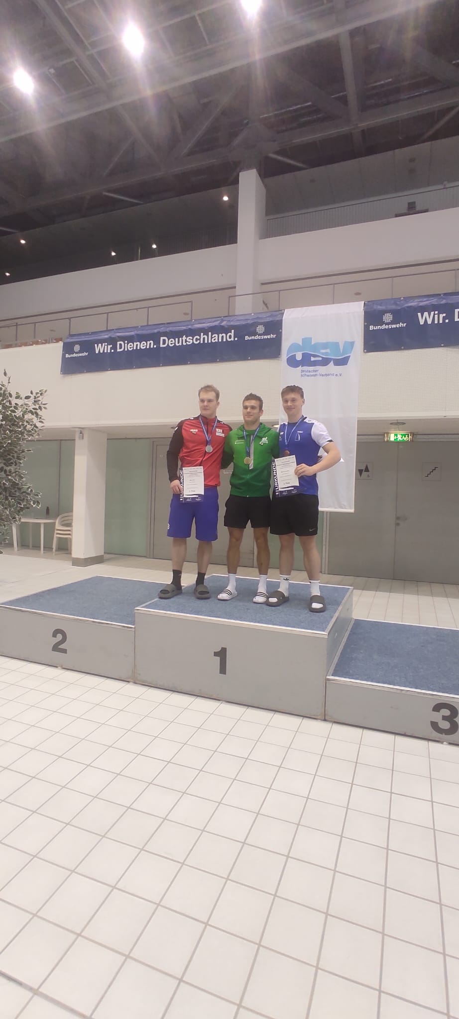 Unsere erfolgshungrigen Sportlerinnen und Sportler sowie das Trainerteam können mit Stolz auf ein äußerst erfolgreiches Wettkampfwochenende bei den Offenen Internationalen Deutschen Wintermeisterschaften im Wasserspringen in Berlin zurückblicken. Jella, Aliana, Zoé, Finn, Emily, Mahi, Espen und Ole sicherten sich gemeinsam mit den Coaches Lukas Orlowski und Michail Sachiasvili, sowie Slava Khamulkin insgesamt acht Medaillen, zahlreiche Normerfüllungen sowie Empfehlungen für internationale Wettbewerbe. Darüber hinaus beeindruckte das Team mit mehreren Weltklasse-Sprüngen – ein weiteres starkes Zeichen für die hervorragende Teamarbeit.
