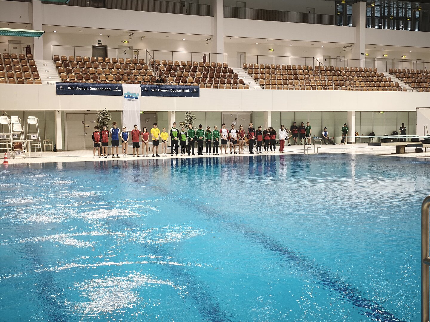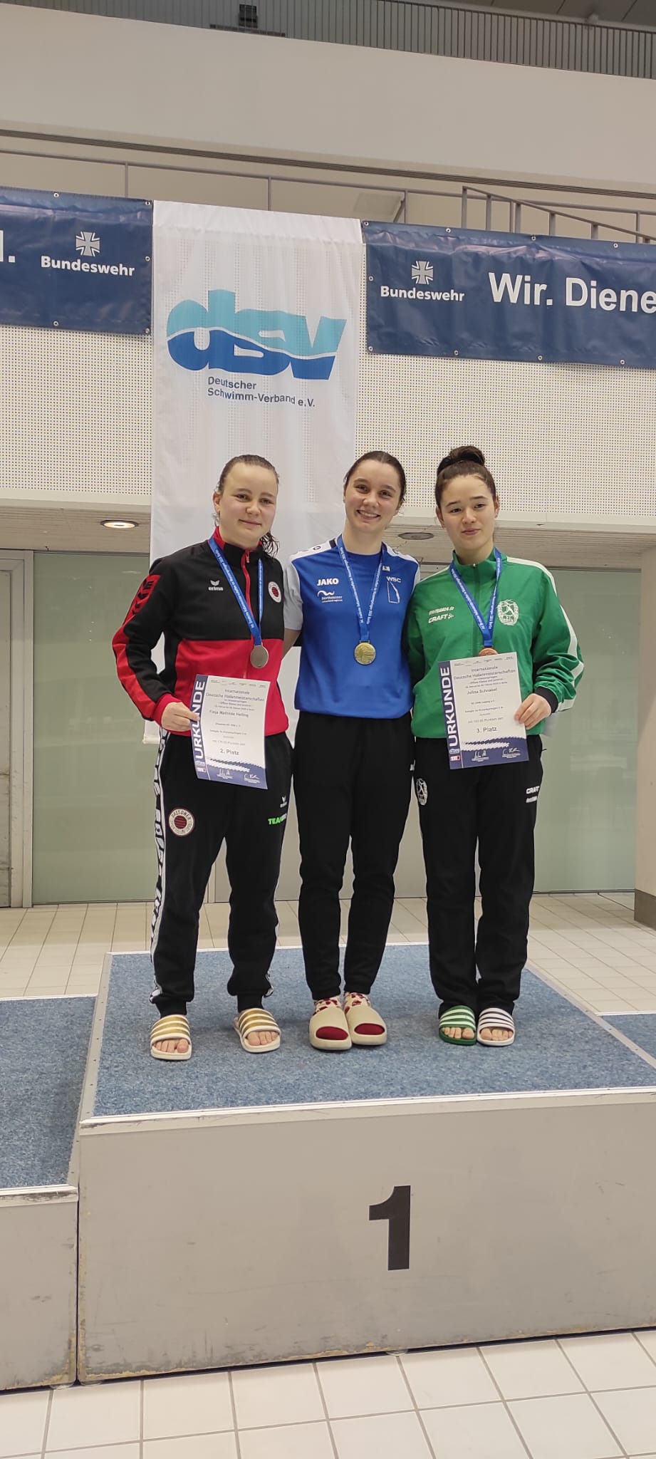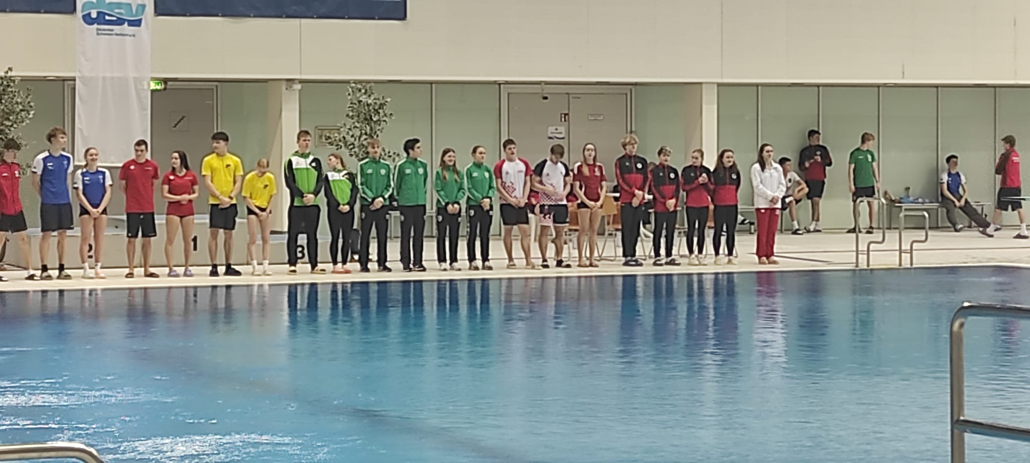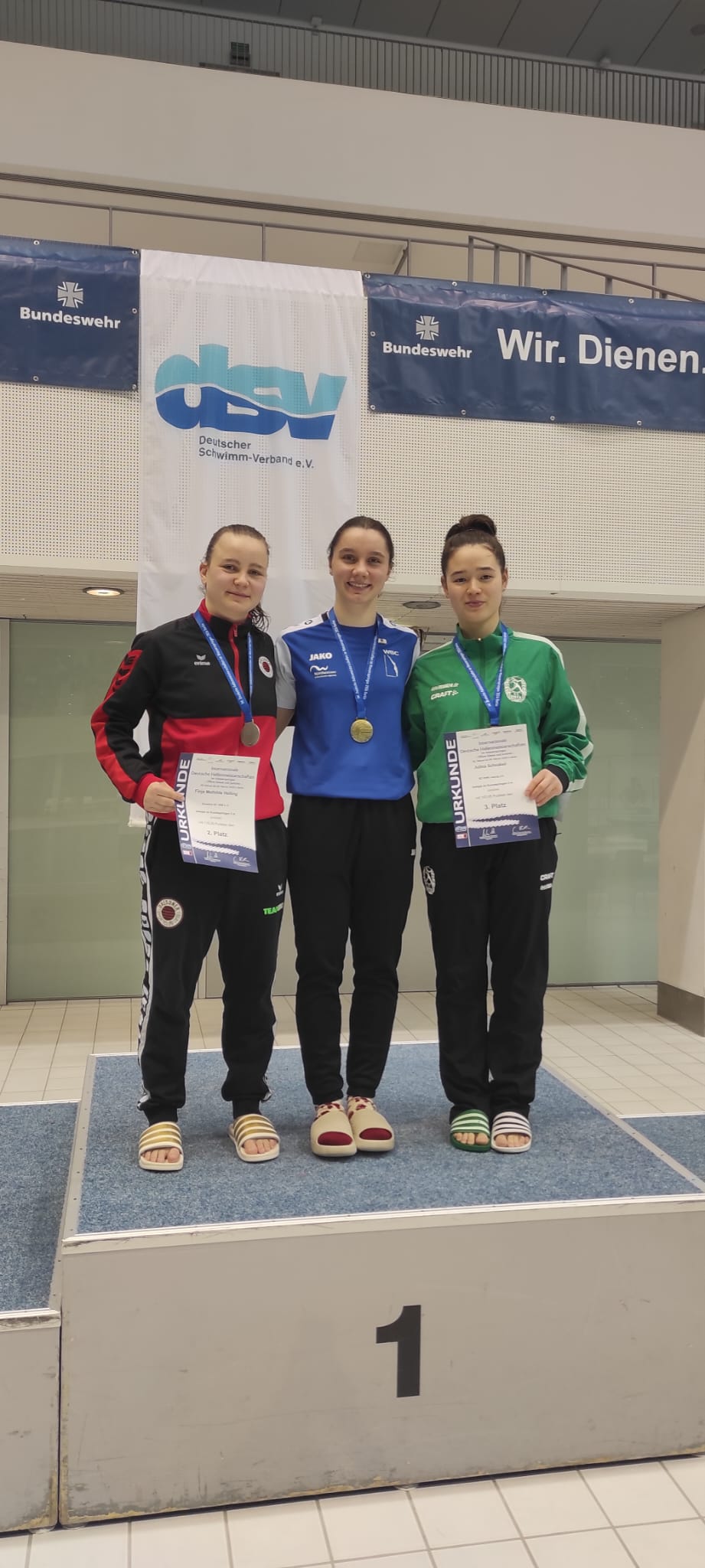 Unsere erfolgshungrigen Sportlerinnen und Sportler sowie das Trainerteam können mit Stolz auf ein äußerst erfolgreiches Wettkampfwochenende bei den Offenen Internationalen Deutschen Wintermeisterschaften im Wasserspringen in Berlin zurückblicken. Jella, Aliana, Zoé, Finn, Emily, Mahi, Espen und Ole sicherten sich gemeinsam mit den Coaches Lukas Orlowski und Michail Sachiasvili, sowie Slava Khamulkin insgesamt acht Medaillen, zahlreiche Normerfüllungen sowie Empfehlungen für internationale Wettbewerbe. Darüber hinaus beeindruckte das Team mit mehreren Weltklasse-Sprüngen – ein weiteres starkes Zeichen für die hervorragende Teamarbeit.