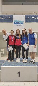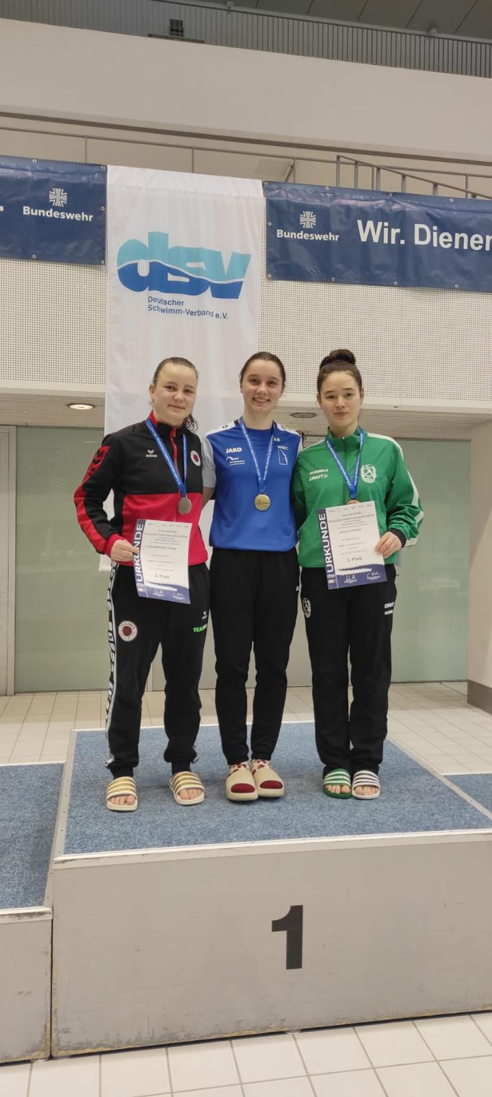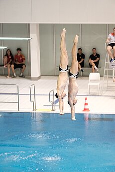 Auch in den Synchronwettbewerben vom 3-Meter-Brett war das Team erfolgreich vertreten. Aliana und Jella belegten im Finale mit 231,42 Punkten einen starken 2. Platz. Das geplante Synchronpaar Tim Axer/Finn konnte verletzungsbedingt leider nicht an den Start gehen.
